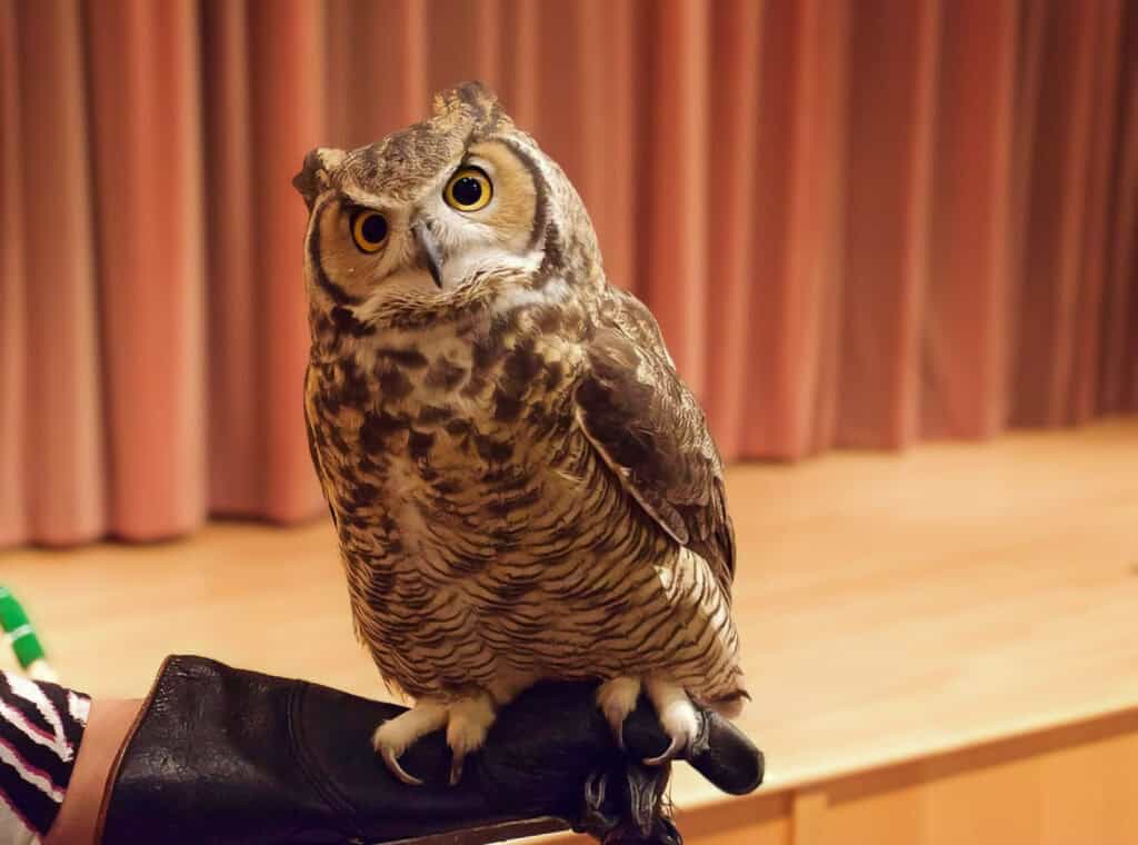 But the moment that really wow’d me took place at the Center’s Raptor Program demonstration. While the docent introduced several rescued birds of prey, each with its own story, the highlight was the Great Horned Owl.