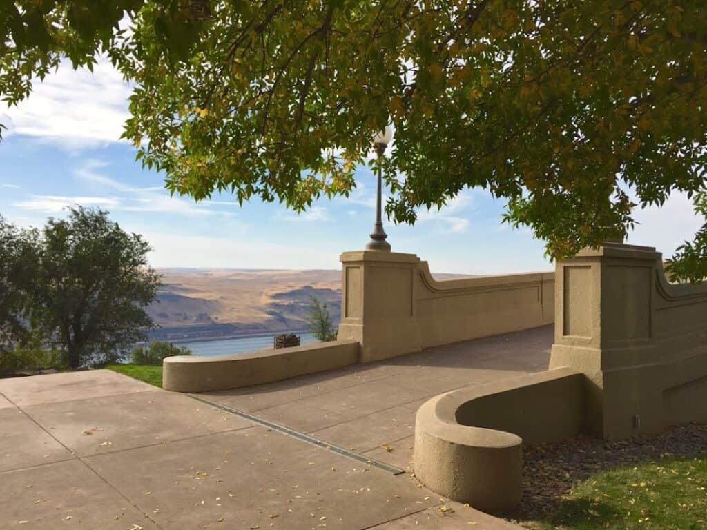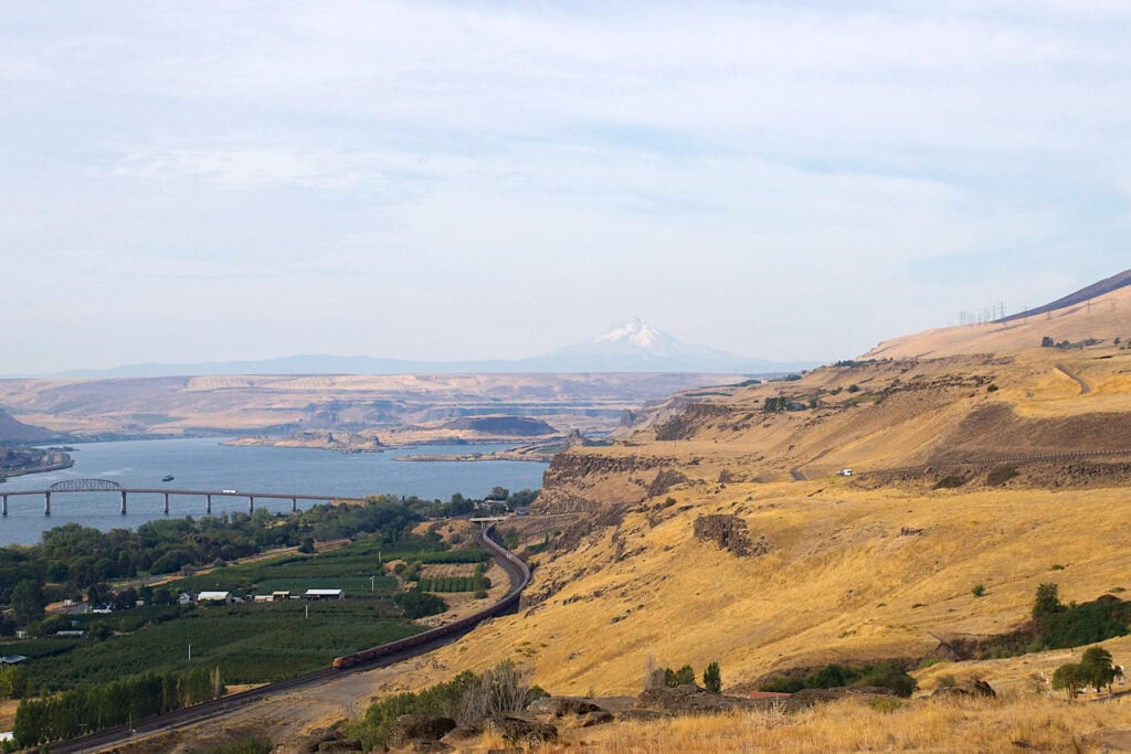 From the museum patio, the landscape opened up into a breath-taking, wide, cinematic view. The Columbia River stretched below, the high desert unfolding in every direction. Freight trains snaked their way through the valley below. It was the kind of moment that didn’t need explanation or narration. Just a little time to absorb it.